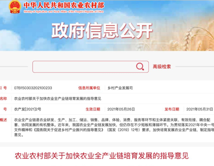 加快农业全产业链培育发展,农业...